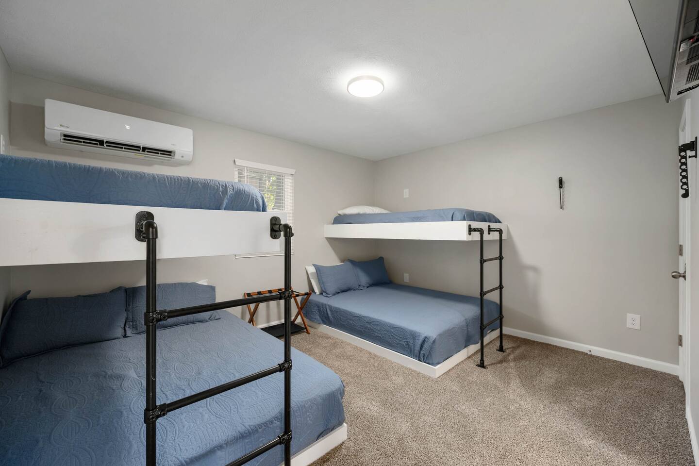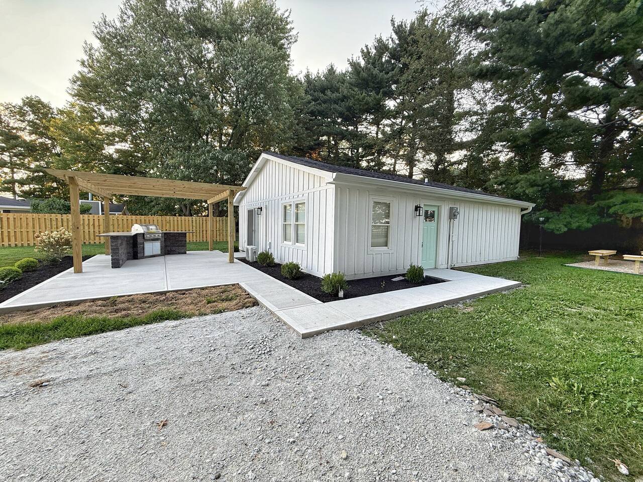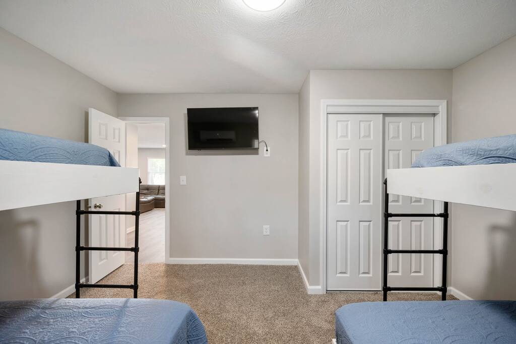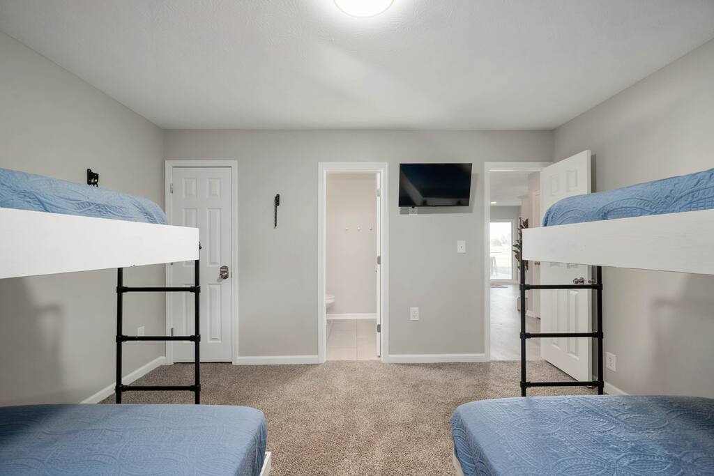 Newly renovated custom Airbnb ranch steps from Grand Park! Sleeps 12 in beds w/ cool memory foam mattresses, 2 Bedrooms (2 bunks in each room w/ queen on the bottom & twin on the top) w/ 2 full baths & a tankless water heater. Outdoor area includes fire pit w/ built-in benches & gourmet grill to enjoy outdoor dining, <10 mi. to 465 making this a perfect location for folks visiting Carmel, Noblesville, Fishers, Indy, Speedway & Greenwood. Need more space? Ask about renting the home nextdoor!