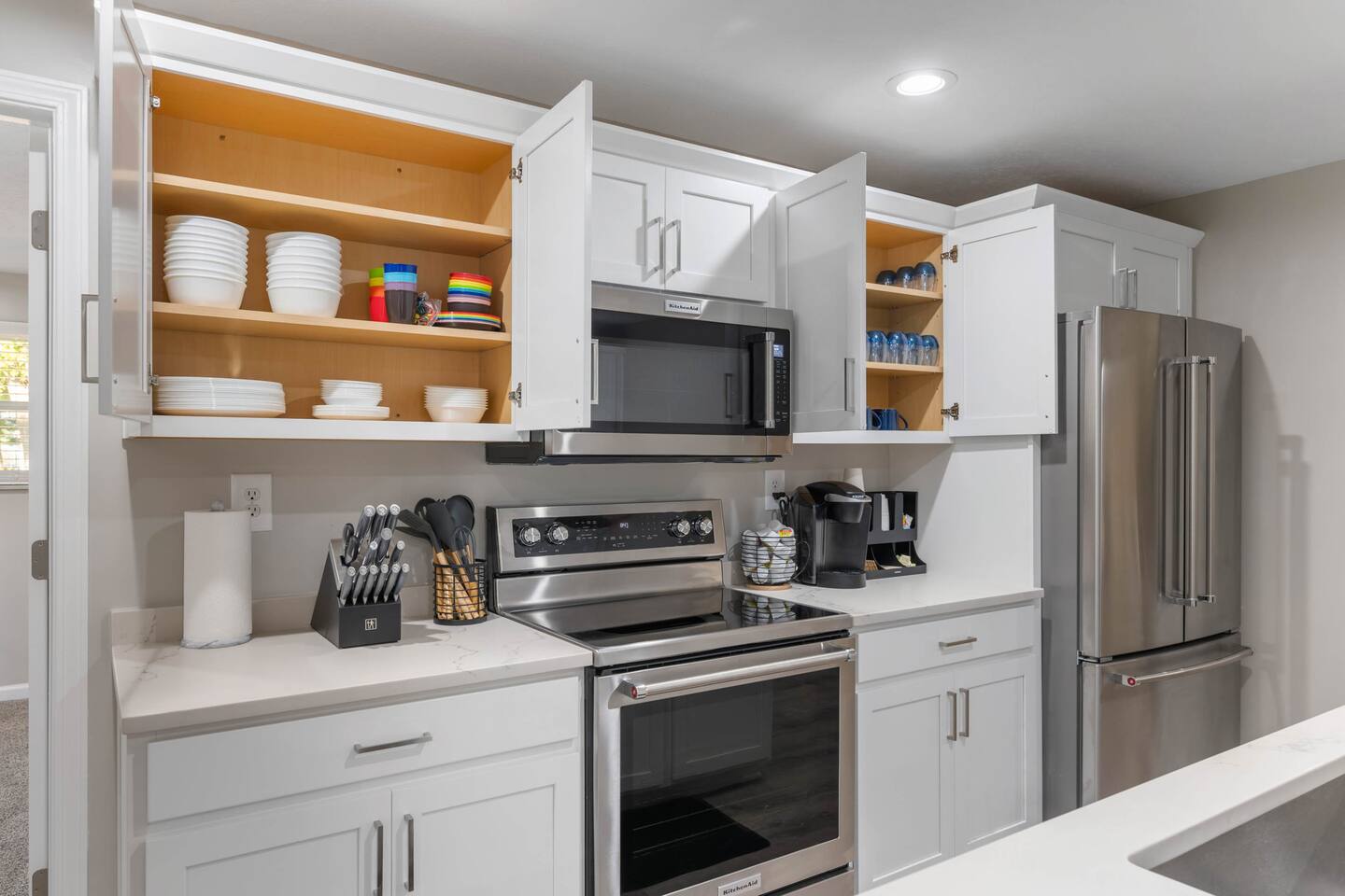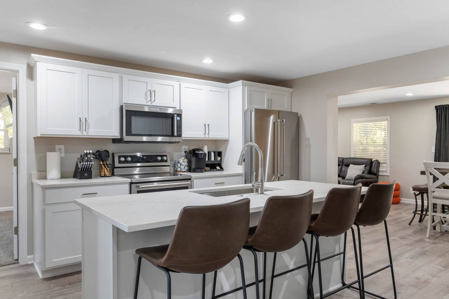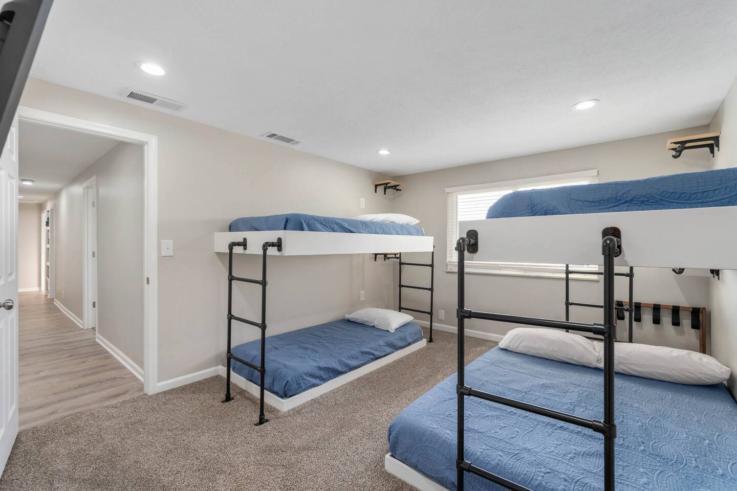 With 2 TANKLESS WATER HEATERS you will always have hot water! This newly renovated custom Airbnb ranch has 5 bedrooms w/ tvs (3 queen suites & 2 bunk rooms) & 4 FULL baths, 11 beds w/ memory foam mattresses & steps from Grand Park Sports Complex, Fire pit w/ built-in benches, <10 mi. to 465 making this a perfect location for those visiting Carmel, Noblesville, Fishers, Indy & Speedway. Ideal for families, teams or large groups! Need more room? Inquire about The Westfield Cottage nextdoor!